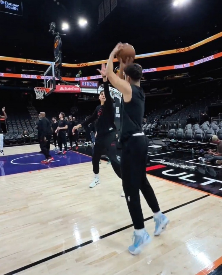 今天首发好好表现!谢泼德赛前热身 底角三分四连中