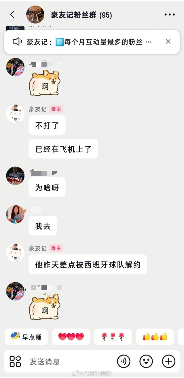 体育博主@735PM篮球晒出群聊记录,并发文写道:“浙江打进决赛反而余嘉豪难做了,协商多留一日遭拒?好像西班牙那边俱乐部很不满意啊,余嘉豪这已经紧急回西班牙去了,那今晚的全运会男篮决赛就看不到余嘉豪,有点可惜啊!”